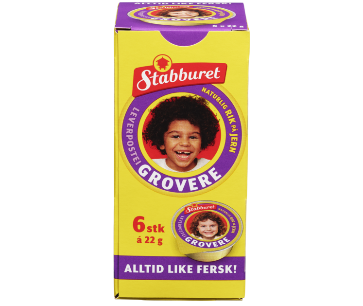 Stabburet Grovere Leverpostei i praktiske porsjonsbegre, alltid like fersk! Grovere er en smaksvariant til dem som ønsker litt mer smak. Grovere er en mindre finmost postei med litt mer krydder og litt mer smak. Den er saftig og smøremyk, og som originalen naturlig rik på jern.